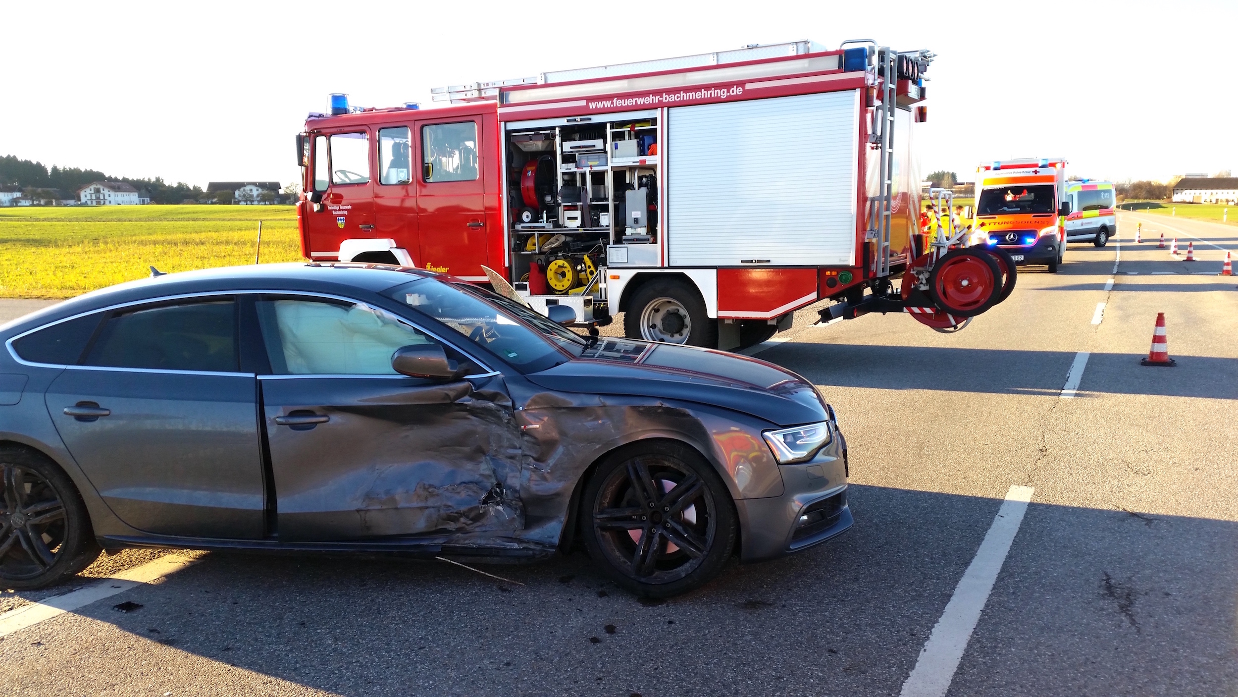 Auf der Staatsstraße 2092 waren an der Abzweigung nach Eiselfing zwei PKW aus Richtung Wasserburg kommend zusammengestoßen. Eines der Fahrzeuge prallte daraufhin in einen angrenzenden Erdwall neben der Straße. Mehrere Krankenwägen und ein Rettungshubschrauber waren zur Versorgung der Verletzten vor Ort. Die Feuerwehr Bachmehring sicherte die Unfallstelle ab, richtete eine Vollsperrung der Staatsstraße mit weiträumiger Umleitung ein und reinigte die Fahrbahn.