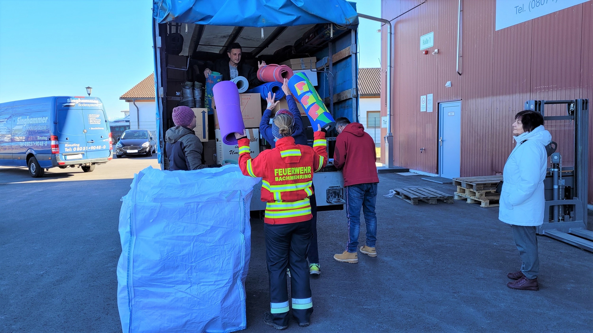 Geschäftiges Treiben herrschte im Vorfeld am Mittwoch im Eiselfinger Gewerbegebiet. Immer wieder fuhren kleine und große Lastwagen vor, um Verbandsmaterial, Medikamente, Lebensmittel, Hygieneartikel, Schlafsäcke, Isomatten, Windeln, Decken und gebrauchte Feuerwehrstiefel abzuholen. Die Verantwortlichen des Partnerschaftsvereins Volovec-Bad Endorf e.V. wurden beim Verladen durch die Feuerwehr Bachmehring unterstützt.