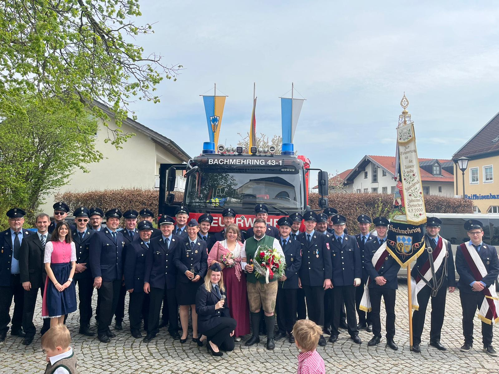 Unser Vereinsvorsitzender Gerhard Wimmer und Ehefrau Julia haben sich heute im Eiselfinger Rathaus das Jawort gegeben. Selbstverständlich war die Feuerwehr Bachmehring zu diesem freudigen Anlass mit einer großen Abordnung sowie Einsatzfahrzeugen vor Ort, um den Beiden zu gratulieren und für die gemeinsame Zukunft alles Gute zu wünschen.