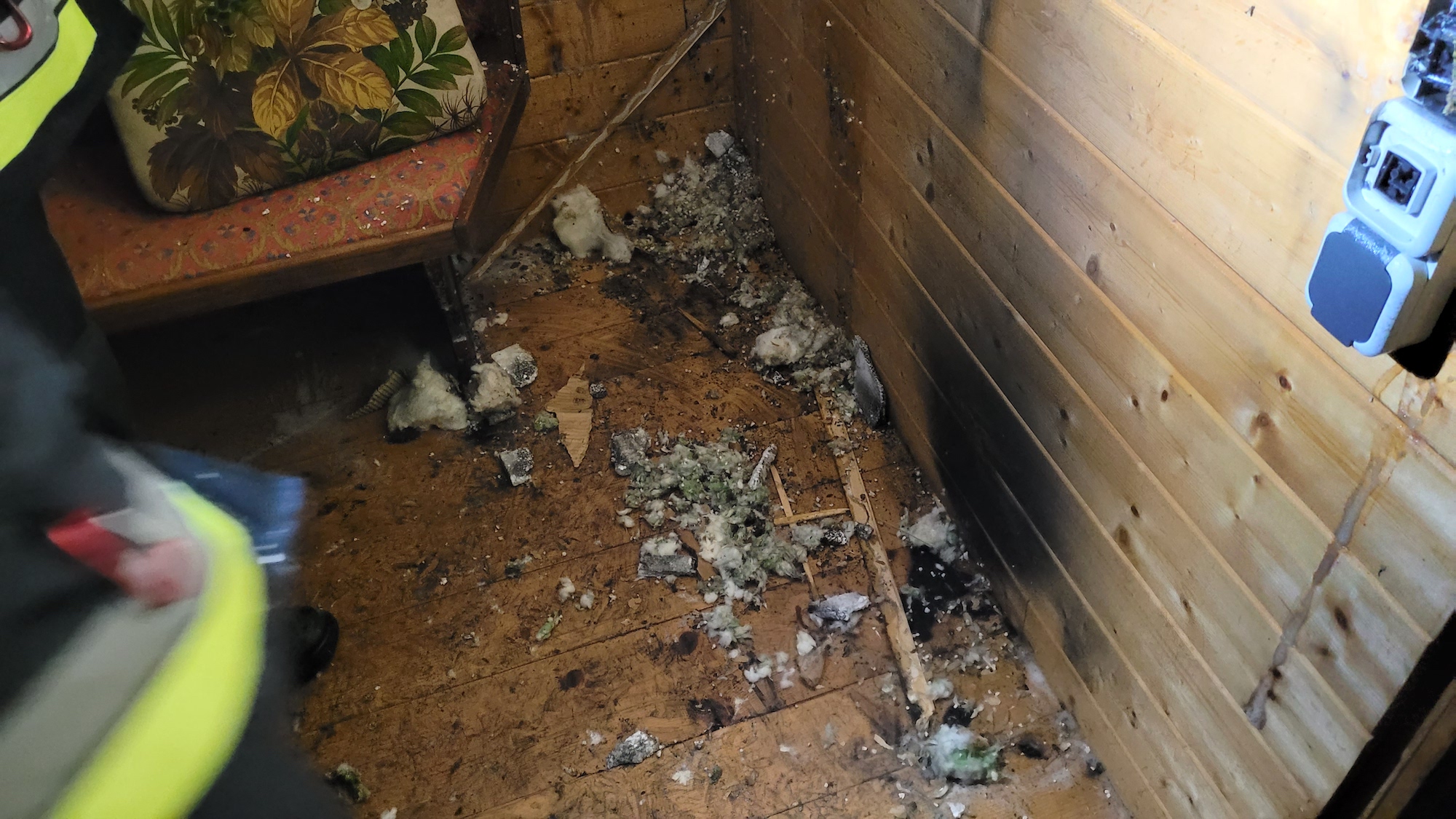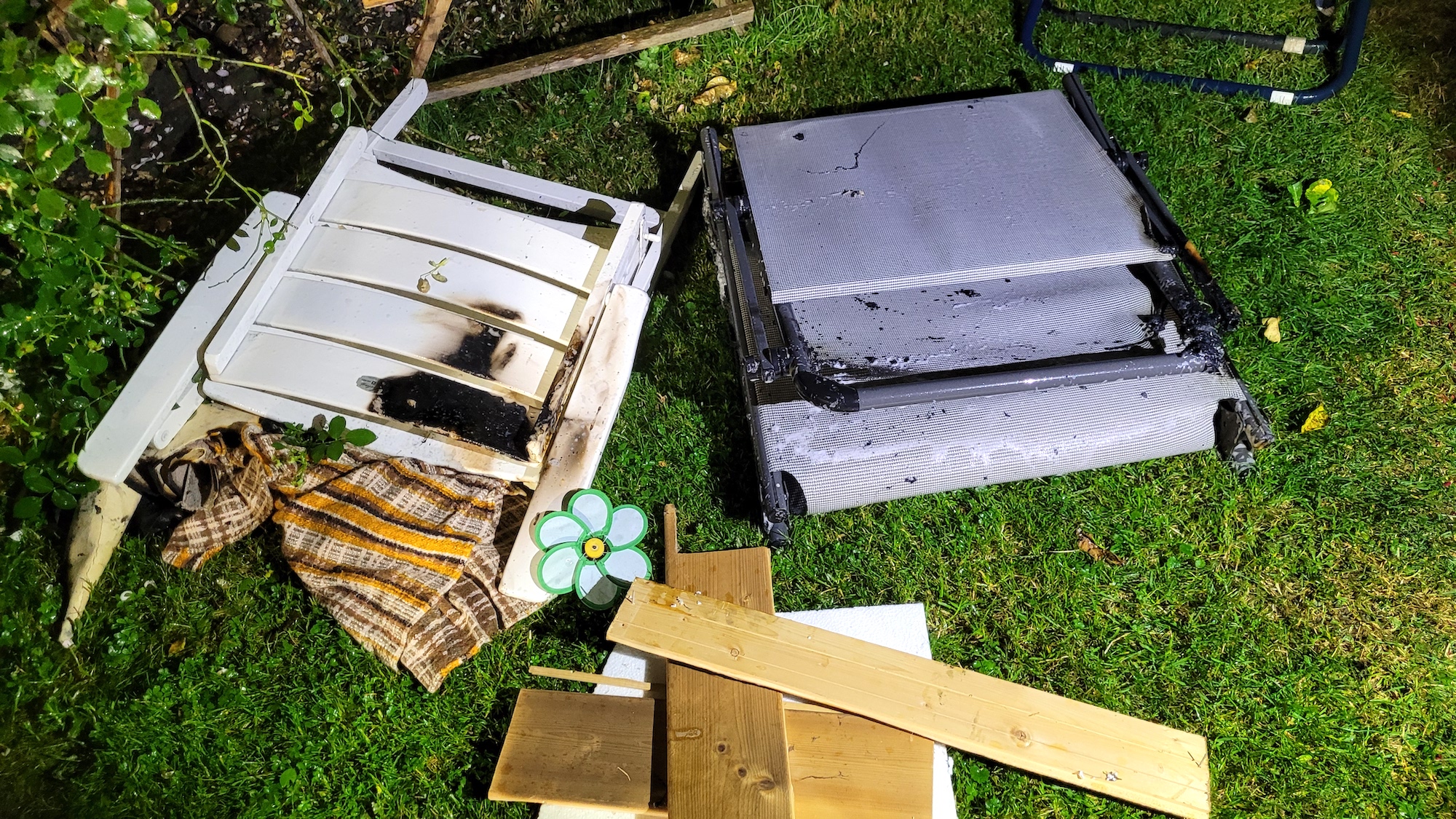 Ein aufmerksamer Anwohner konnte die Flammen mit Hilfe eines Feuerlöschers zunächst eindämmen. Durch die Feuerwehren mussten schließlich Teile der Holzverkleidung und des Dachs der direkt neben einem Garagen- und Werkstattgebäude stehenden Hütte geöffnet werden, um Glutnester ablöschen zu können.