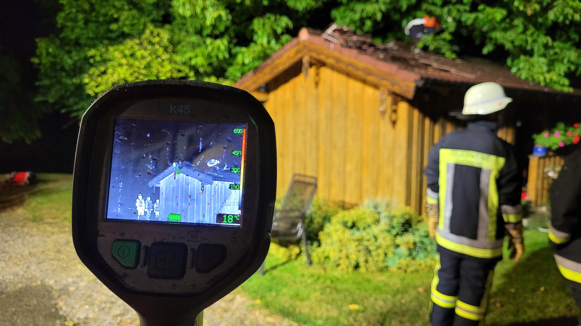 Die Feuerwehren aus Schönberg, Bachmehring und Evenhausen wurden heute um 23.45 Uhr in den Eiselfinger Ortsteil Pollersham gerufen. Dort geriet nach einem Blitzeinschlag während eines kräftigen Gewitters eine Gartenhütte in Brand.