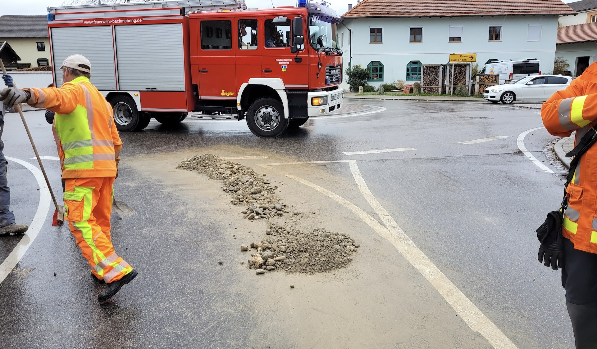 Die Feuerwehr Bachmehring wurde heute um 13.32 Uhr zu einer verschmutzten Fahrbahn in Eiselfing alarmiert.