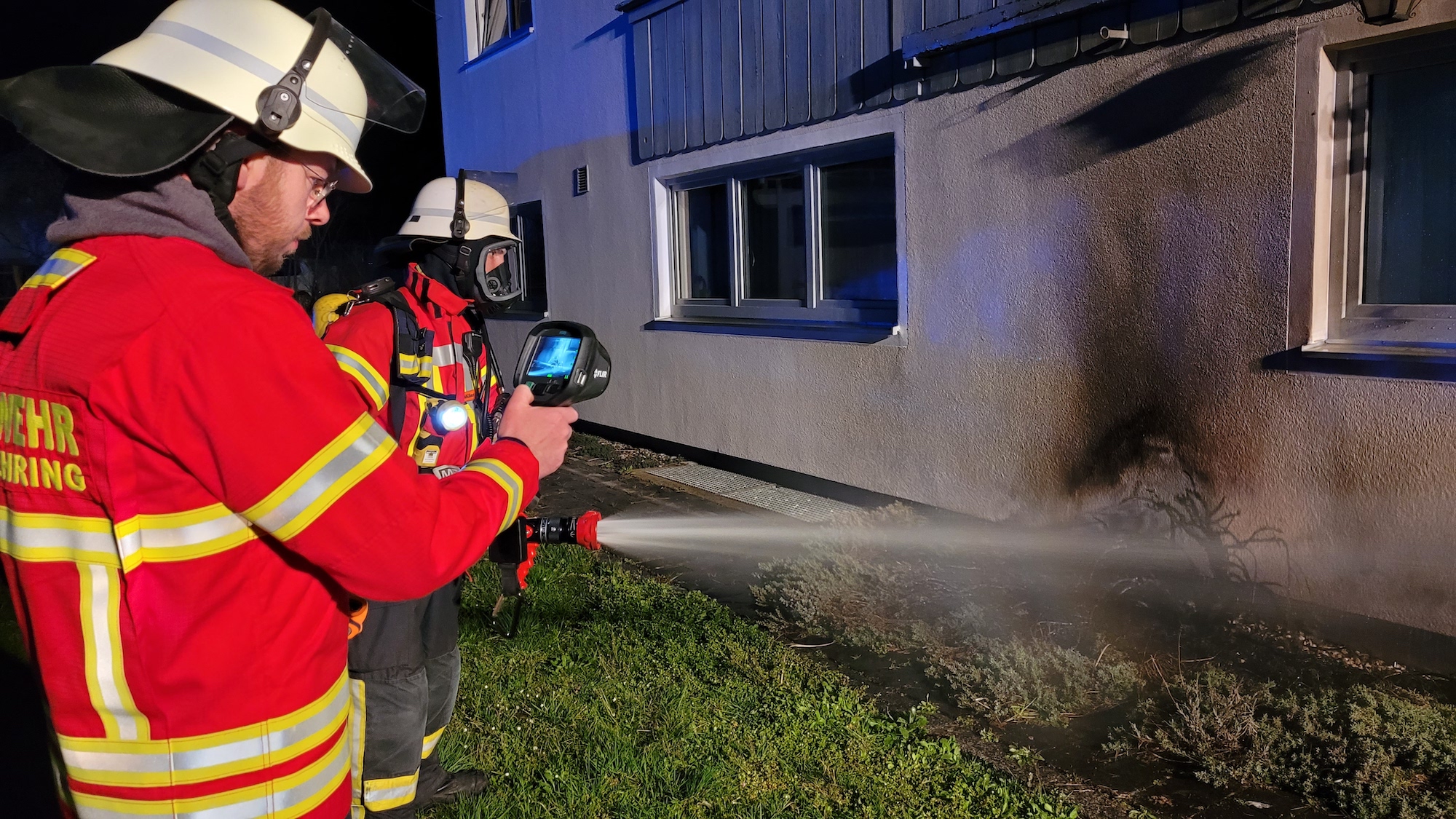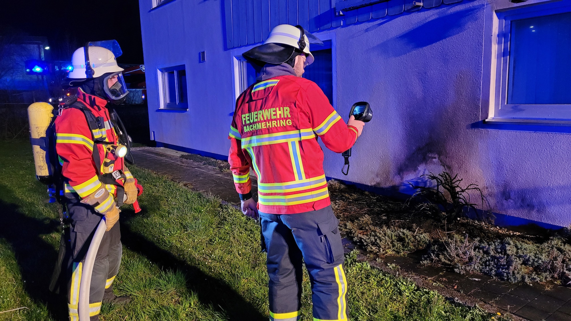 Vor dem Gebäude des Kreisbauhofs, welches aktuell auch als Flüchtlingsunterkunft genutzt wird, war ein Busch in Flammen aufgegangen. Ein Atemschutztrupp der Feuerwehr Bachmehring löschte das Feuer umgehend ab und kontrollierte die Brandstelle mit einer Wärmebildkamera.