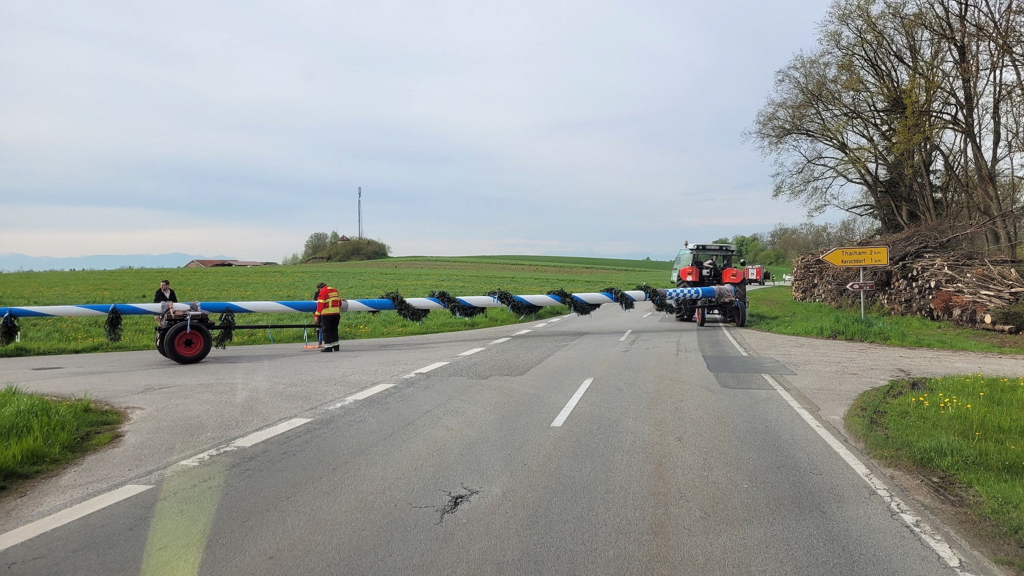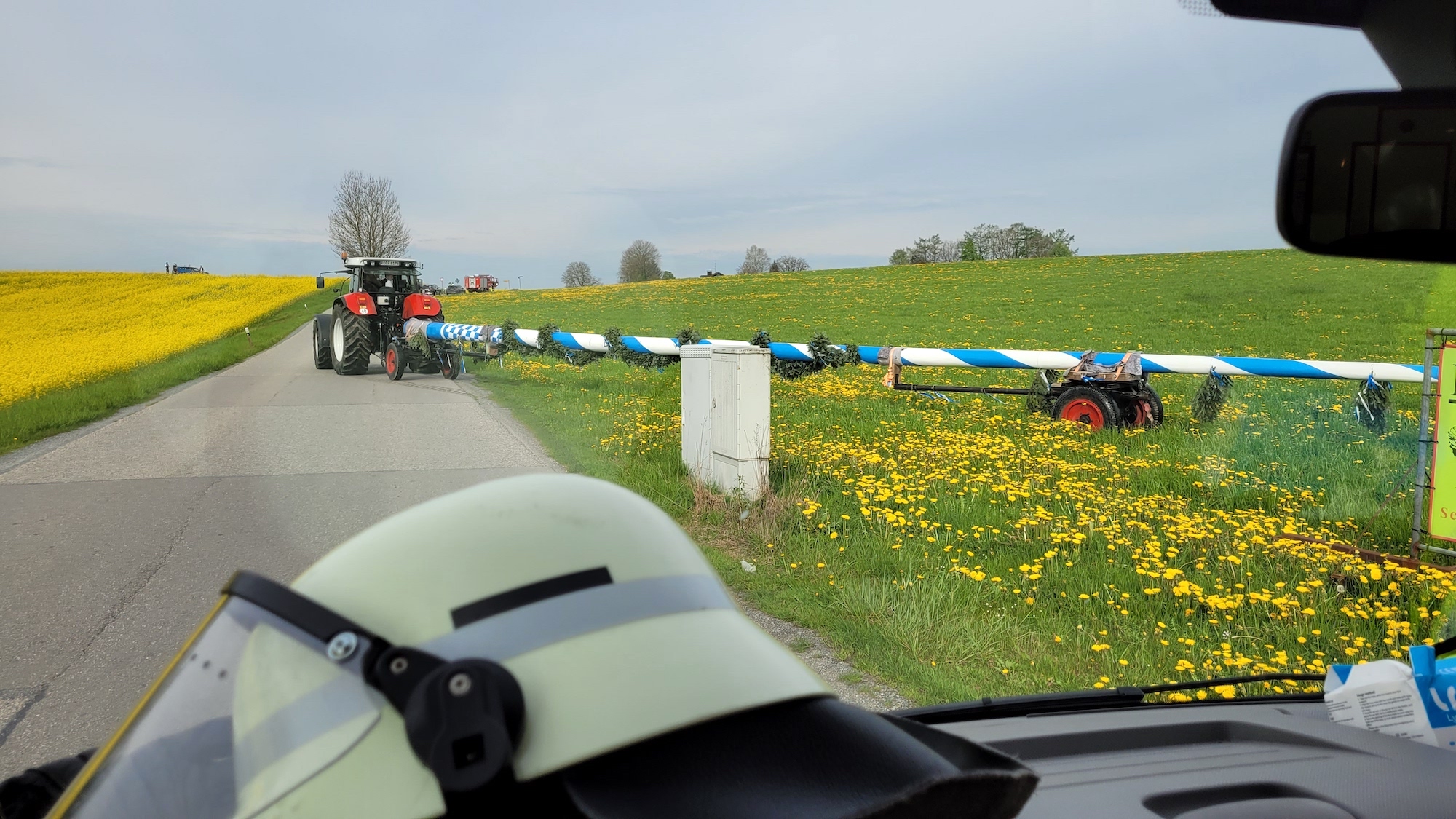 Die Feuerwehren aus Aham und Bachmehring übernahmen heute die Verkehrsabsicherung bei einem Maibaumtransport von Alteiselfing nach Hart in der Gemeinde Schechen.