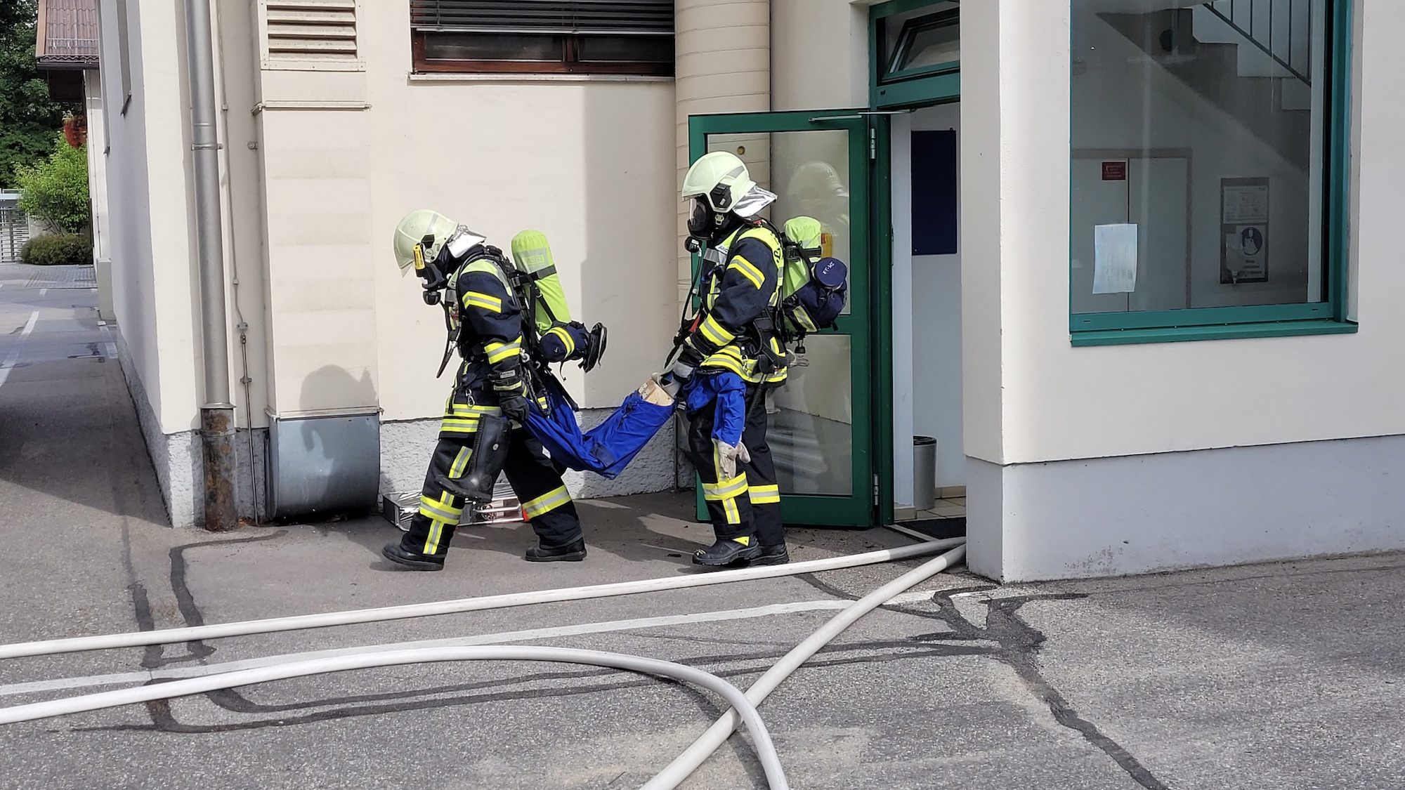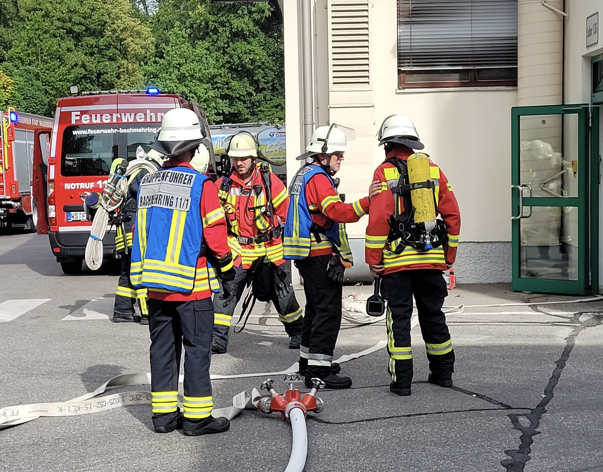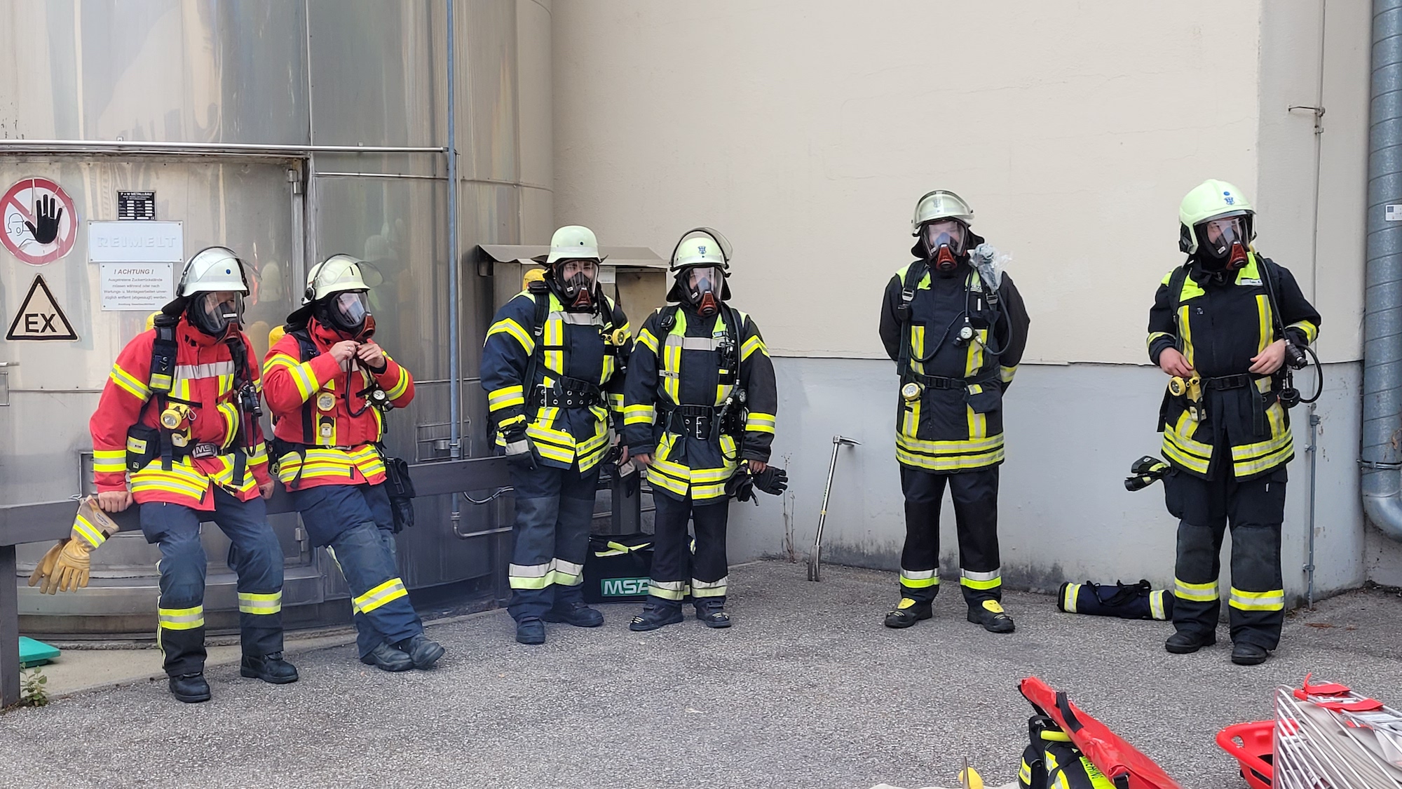 Die Übung beobachteten Vertreter der Kreisbrandinspektion Rosenheim sowie Verantwortliche der Molkerei, welche den Teilnehmer*innen eine professionelle und schnelle Abwicklung des Übungseinsatzes bescheinigten. Als Dankeschön für den ehrenamtlichen Einsatz spendierte die Firma Bauer zum Abschluss ein gemeinsames Mittagessen.