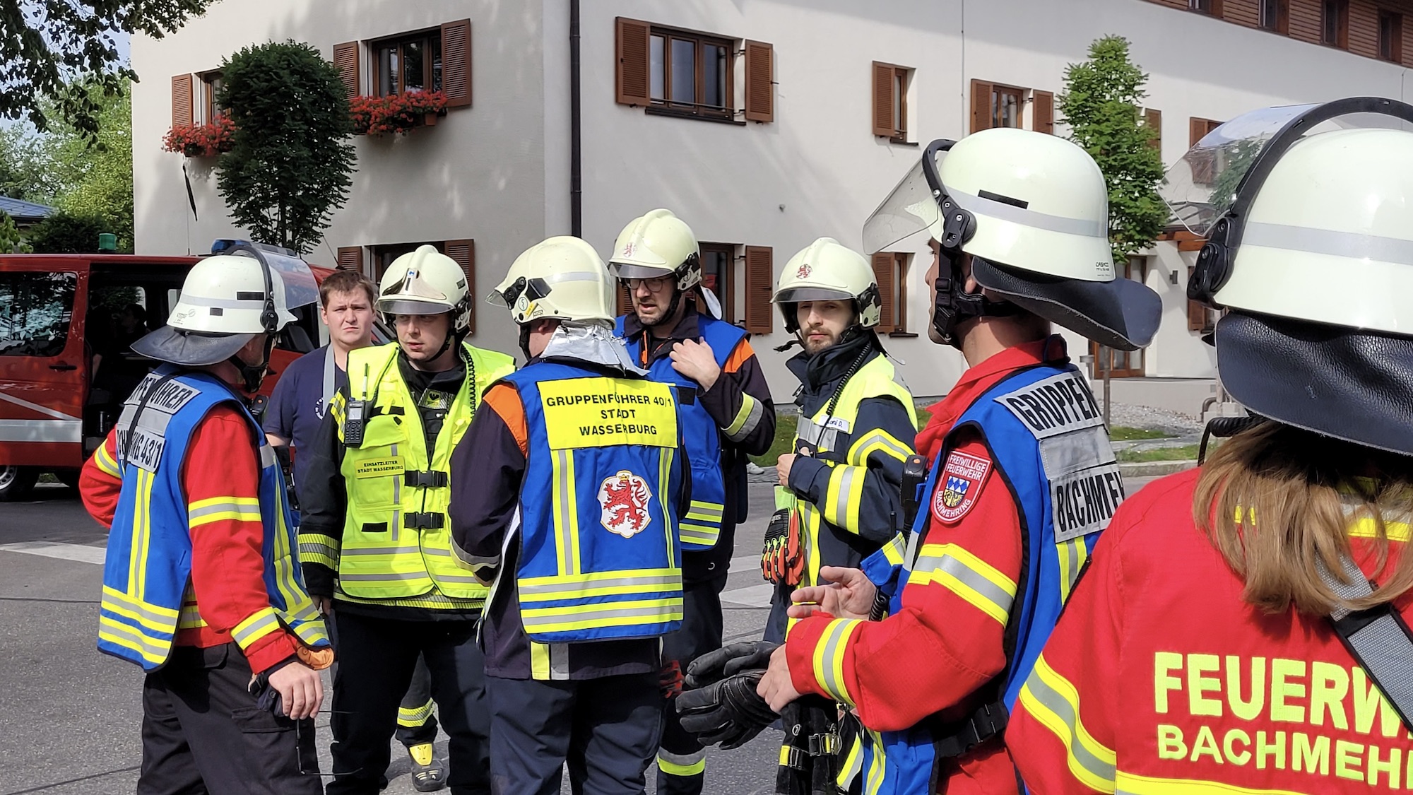 Die Feuerwehr Bachmehring beteiligte sich heute mit einem Löschgruppenfahrzeug und dem Mehrzweckfahrzeug an dem realistischen Übungsszenario. Angenommen wurde ein um 9.00 Uhr festgestellter Brand mit starker Rauchentwicklung und vermissten Personen in einer Lagerhalle. Gemäß der Alarmierung im Ernstfall trafen die Feuerwehren aus Bachmehring und Wasserburg zuerst ein und starteten mit mehreren Atemschutztrupps sofort die Personensuche sowie die Brandbekämpfung. Sie wurden durch die nachgeforderten Kräfte der Feuerwehren Attel-Reitmehring und Babensham, die auch eine Löschwasserversorgung aus einem angrenzenden Teich aufbauten, unterstützt. Anschließend mussten die betroffenen Räumlichkeiten mit Spezialgeräten belüftet werden.