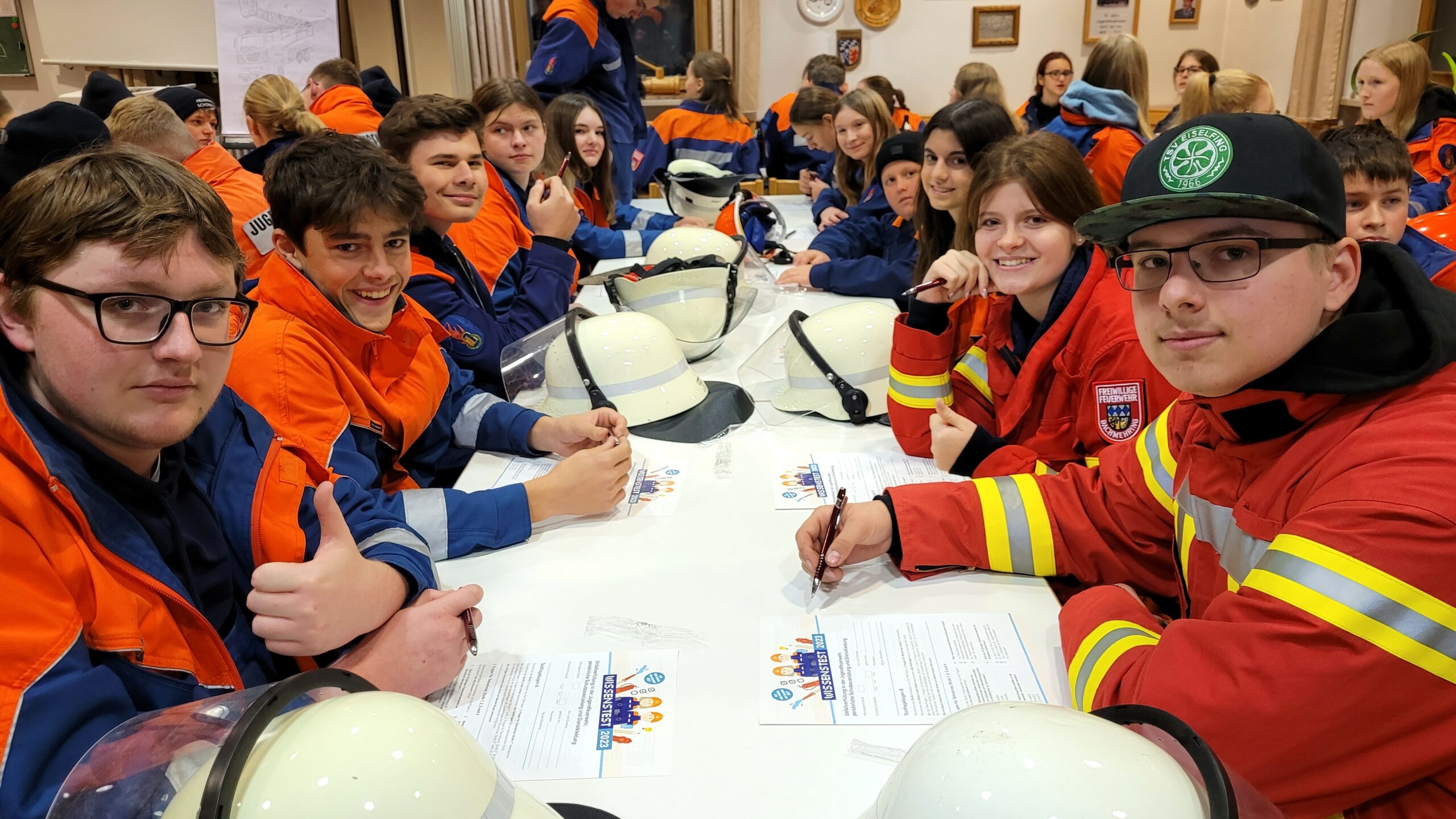Die Feuerwehranwärter*innen im Alter zwischen zwölf und 18 Jahren mussten Grundsätze rund um die persönliche Schutzausrüstung, die Dienstkleidung und den sicheren Umgang mit Schlauch und Strahlrohr benennen und präsentieren. Zudem standen Fragen bezüglich der Führungsstrukturen innerhalb der Feuerwehr und an Einsatzstellen sowie Richtlinien zum Unfallschutz im Übungs- und Einsatzdienst auf dem Programm.