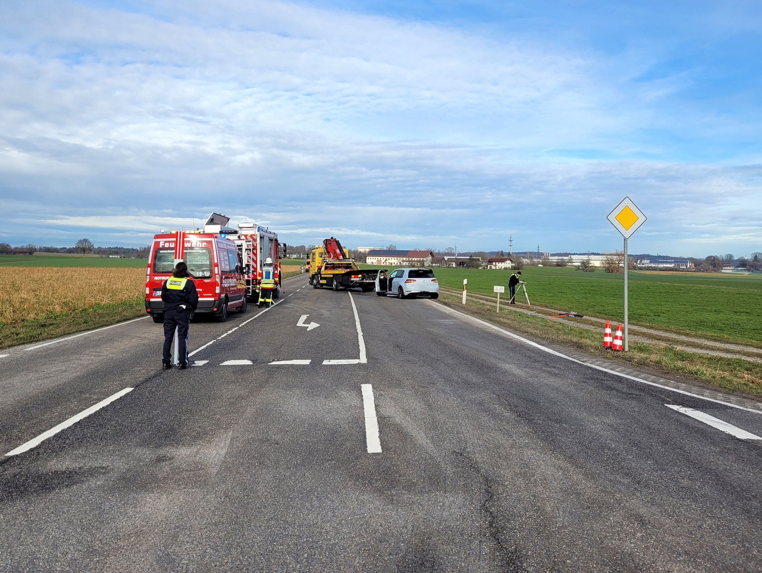 Die Feuerwehr Bachmehring unterstützte den Rettungsdienst bei der Erstversorgung der Verletzten, sicherte die Unfallstelle ab und richtete eine knapp dreistündige Vollsperrung der Staatsstraße mit Verkehrsumleitung ein. Zudem wurden der Brandschutz sichergestellt, auslaufende Betriebsstoffe gebunden und die Straße von Fahrzeugteilen gereinigt.