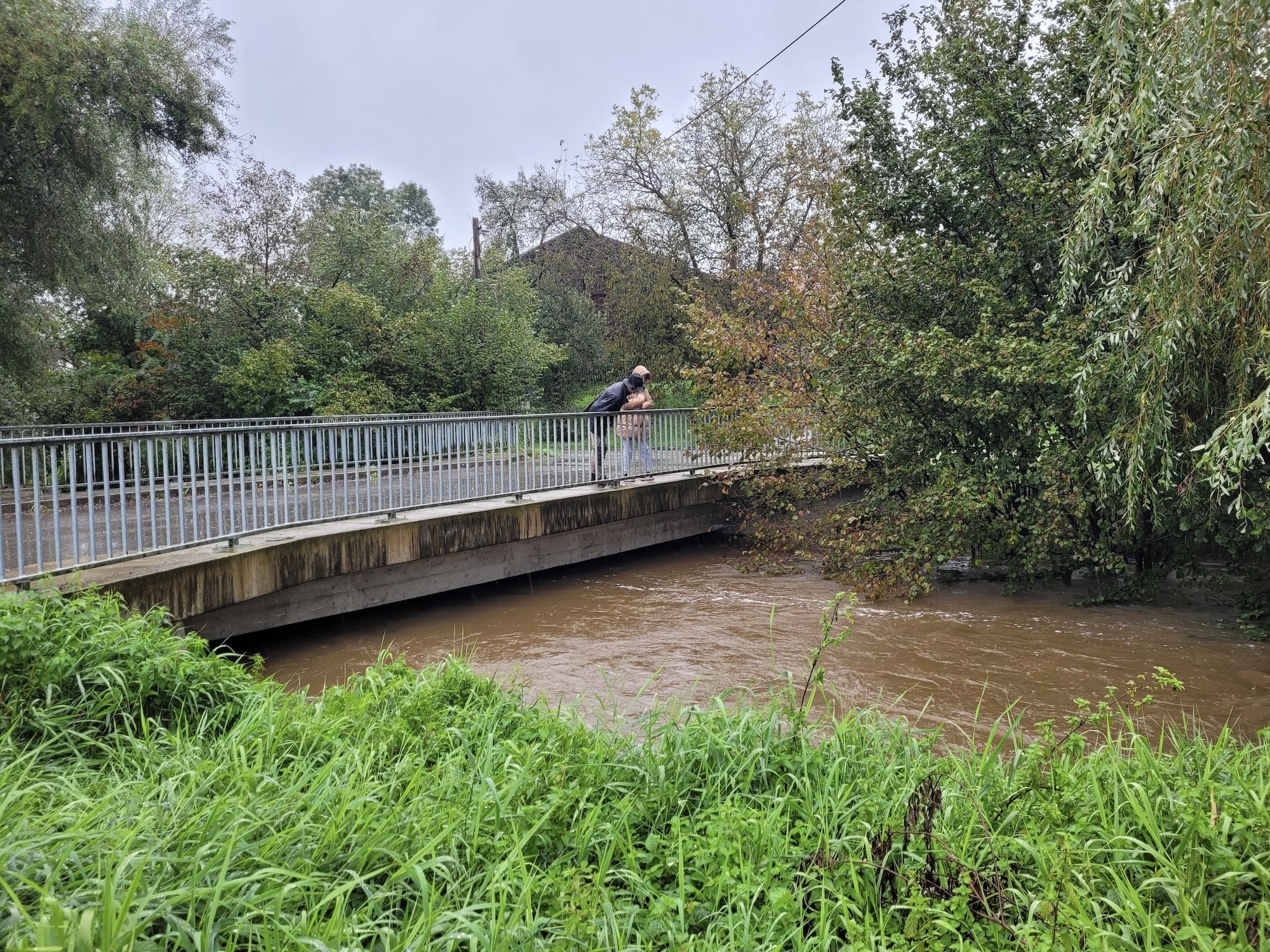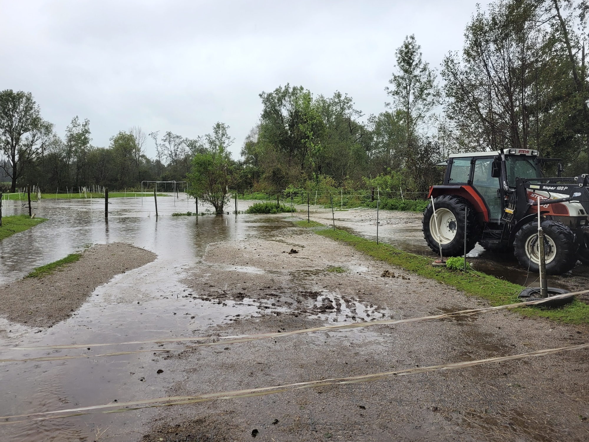 Im Anschluss wurde die Feuerwehr Aham bei einem Hochwassereinsatz unterstützt. Die Murn in Aham drohte ebenfalls über die Ufer zu treten. Das Wasser staute sich am Ende knapp nicht mehr an der dortigen Betonbrücke zurück. Allerdings wurden bachabwärts eine Pferdekoppel und Teile eines Stallgebäudes überschwemmt. Die Feuerwehr Bachmehring übernahm den Transport von mehreren Paletten mit Sandsäcken aus einem Lager in Wasserburg am Inn. Mit diesen konnten die Kamerad*innen der Ahamer Feuerwehr die Situation unter Kontrolle bringen und das Wasser schließlich in den Bach zurückleiten.