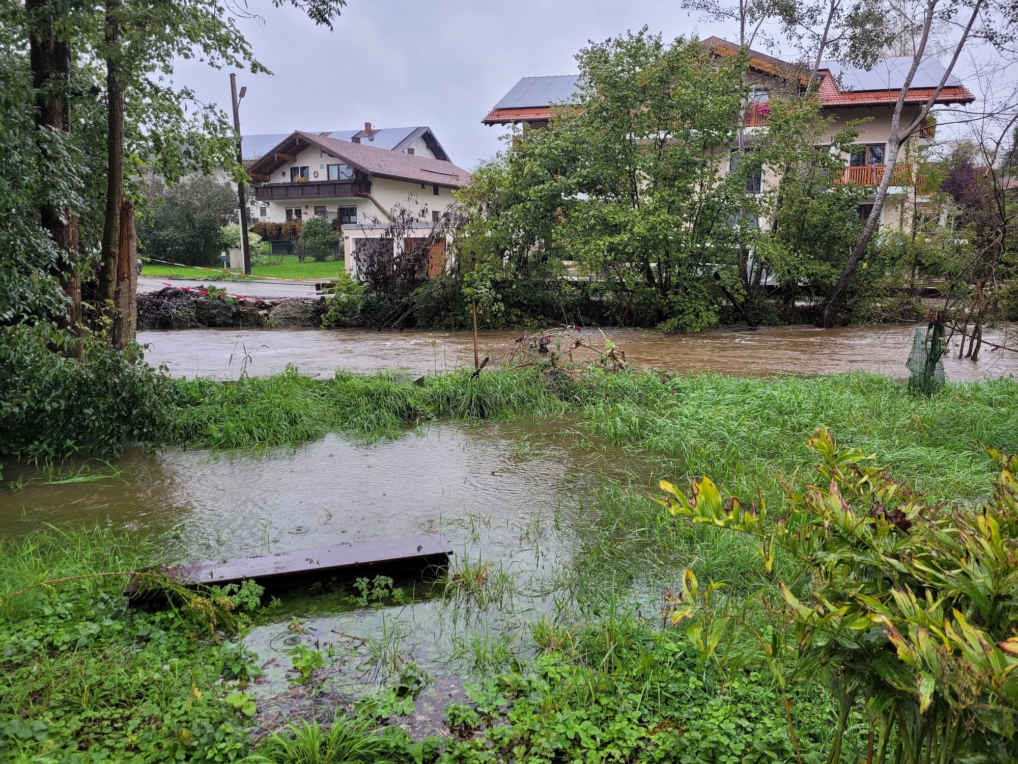 Wie zahlreiche weitere kleine Bäche und Gewässer in der Region trat auch der Schwarzmoosbach mit seinen Zuläufen zwischen Eiselfing und Bachmehring aufgrund des Dauerregens großflächig über die Ufer. Die Feuerwehr Bachmehring musste daher Bereiche des direkt angrenzenden Naturlehrpfads wegen teilweiser Überflutung und Unterspülung des Weges für Fußgänger*innen und Radfahrer*innen sperren.