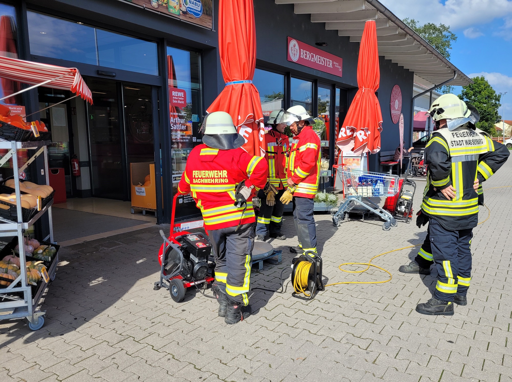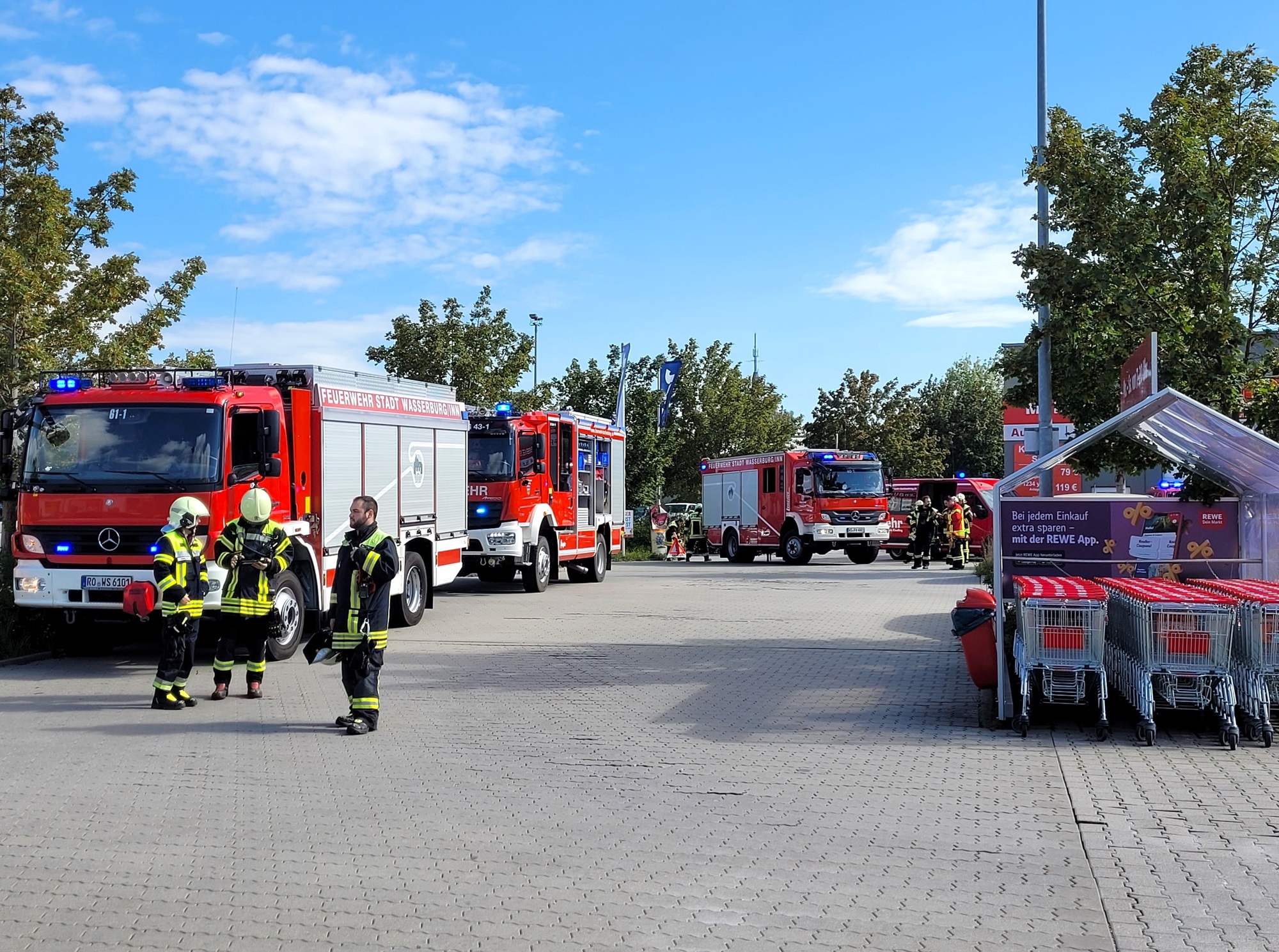 Die Feuerwehren aus Wasserburg, Attel-Reitmehring und Bachmehring wurden heute um 14.28 Uhr zum REWE-Supermarkt in der Bernd-Motzkus-Straße in Wasserburg am Inn alarmiert.