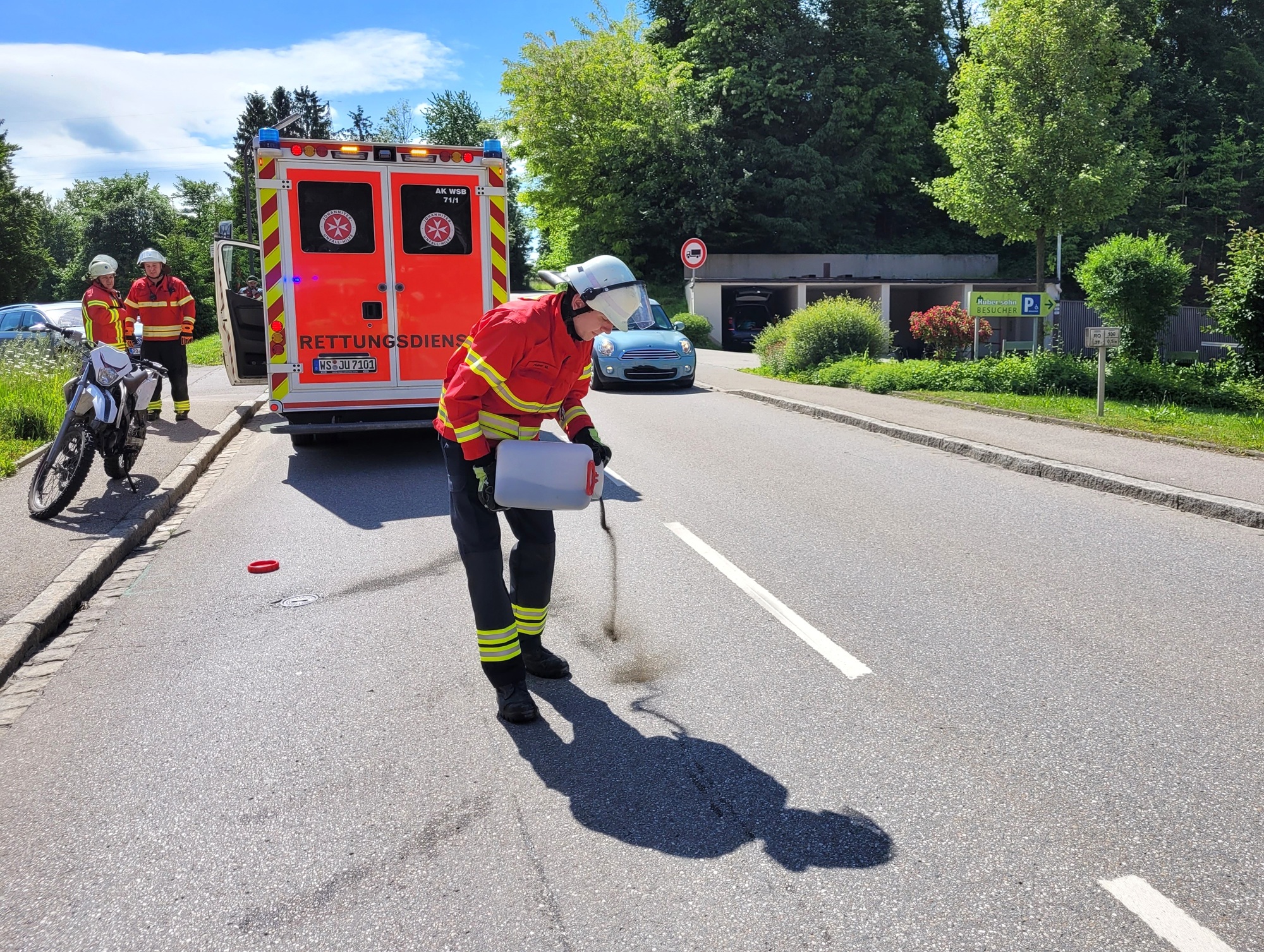 Im Bereich der Kreuzung mit der Dirnecker Straße waren ein Pkw und ein Motorrad nach einem Vorfahrtsverstoß zusammengeprallt. Der Fahrer des Motorrads rutsche daraufhin mehrere Meter weit über die Straße und zog sich Verletzungen zu. Er musste vom Rettungsdienst behandelt und in eine Klinik eingeliefert werden.