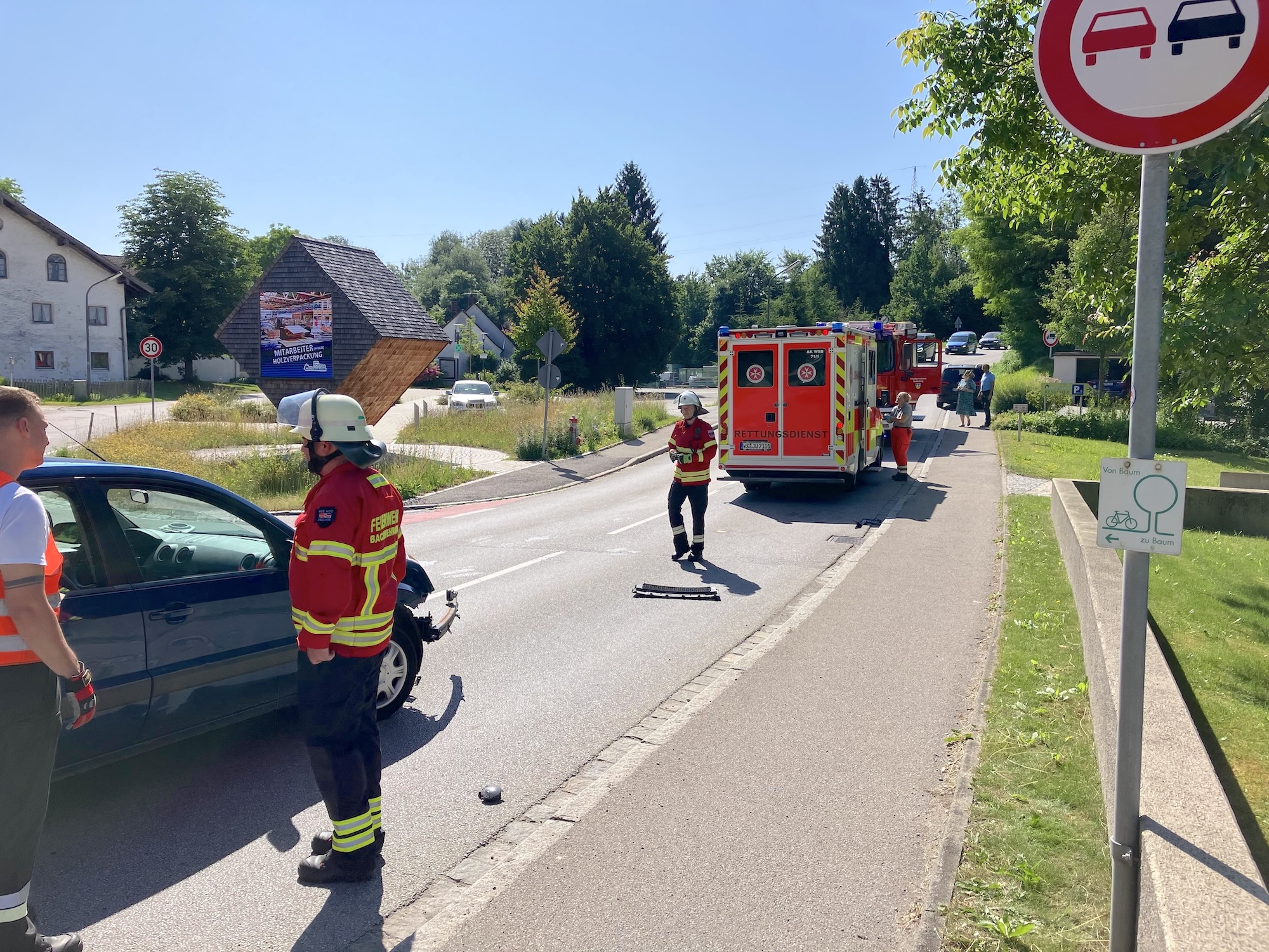 Die Feuerwehr Bachmehring wurde heute um 9.41 Uhr zu einem Verkehrsunfall mit zwei beteiligten Fahrzeugen in der Wasserburger Straße in Bachmehring alarmiert. Im Bereich der dortigen Kreuzung mit der Dirnecker Straße waren zwei Pkw zusammengeprallt, wodurch eine beteiligte Person verletzt wurde. Sie musste vom Rettungsdienst versorgt und anschließend in eine Klinik gebracht werden.