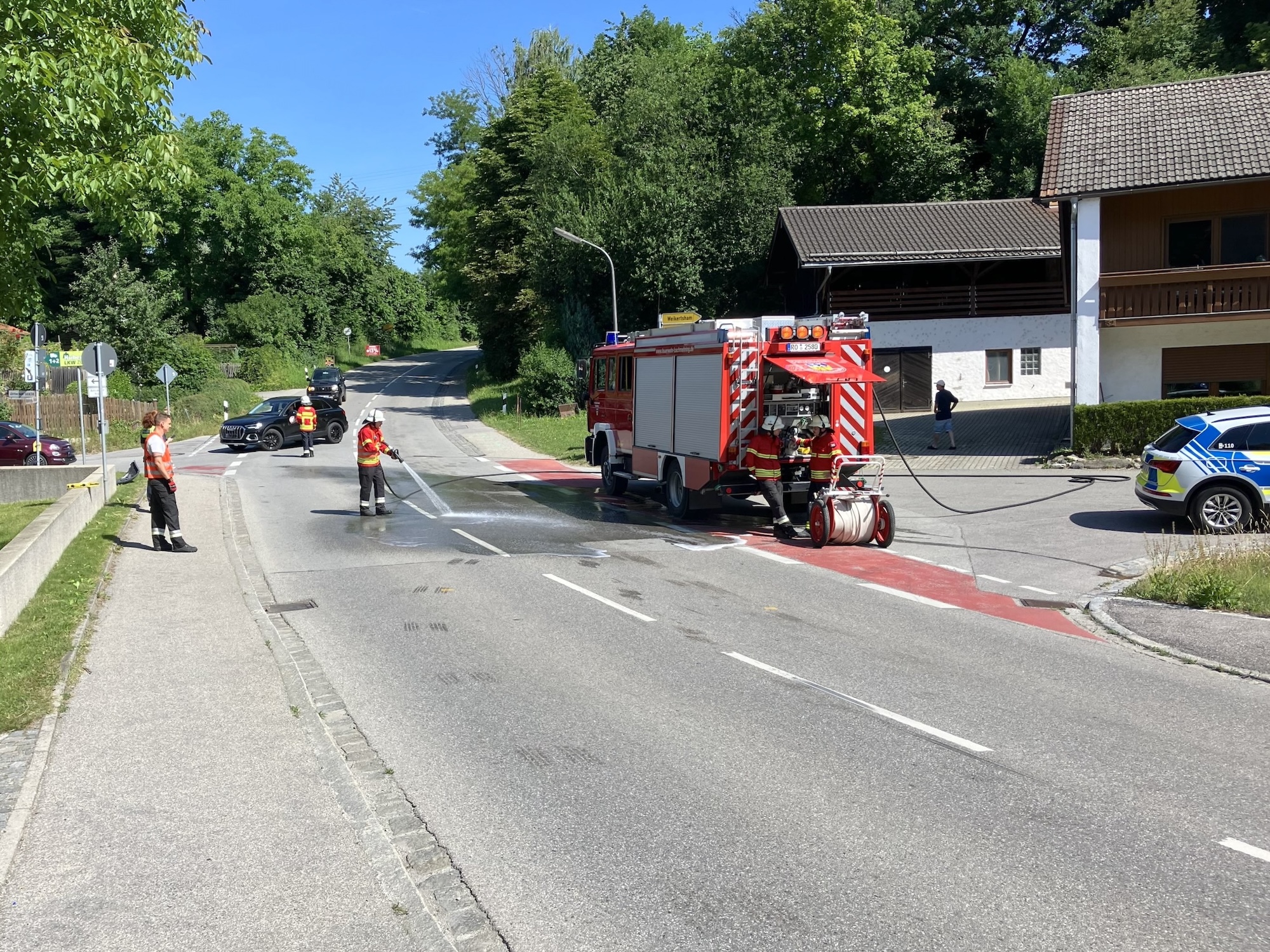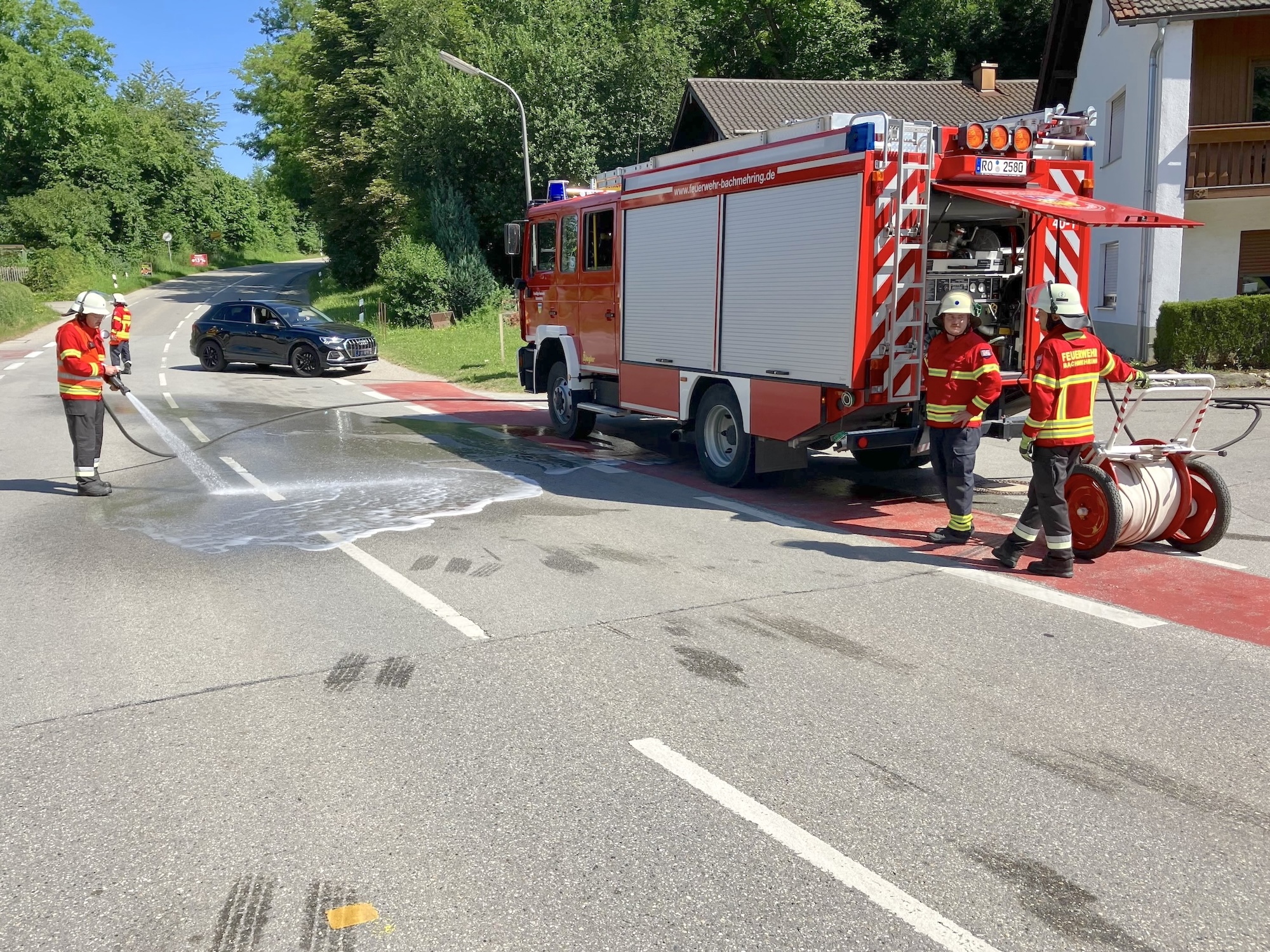 Die Feuerwehr Bachmehring sicherte die Unfallstelle ab und richtete eine halbseitige Sperrung mit Verkehrsregelung ein. Zudem wurden der Brandschutz sichergestellt und die Fahrbahn von ausgelaufenen Betriebsstoffen sowie Fahrzeugteilen gereinigt.