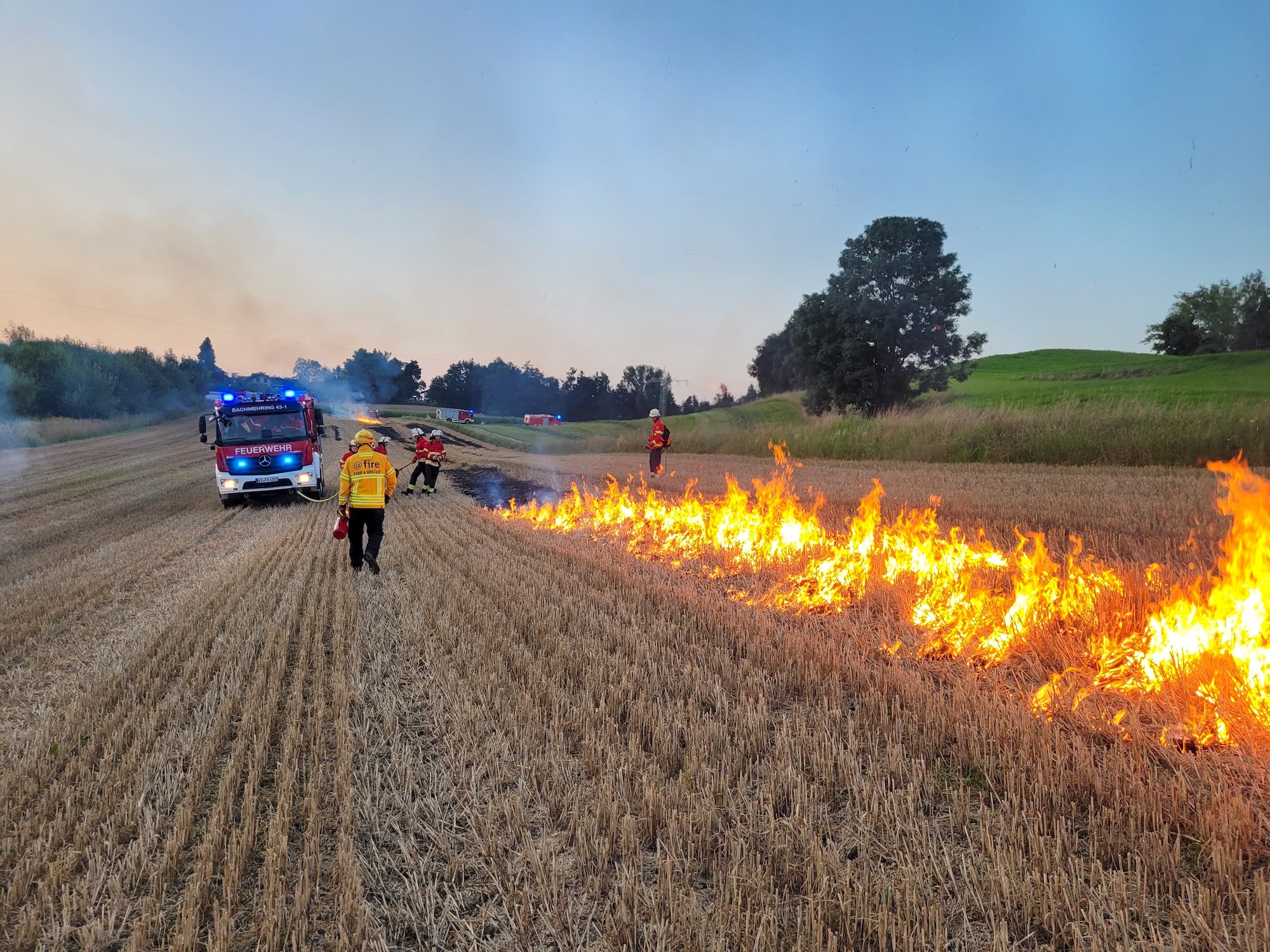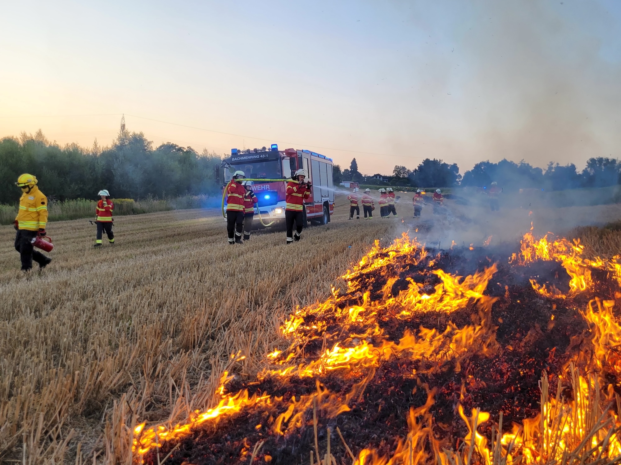 Die effektive und sichere Bekämpfung eines Flächenbrands im Hochsommer war jetzt gemeinsames Übungsszenario der Feuerwehren aus Bachmehring und Schnaitsee.