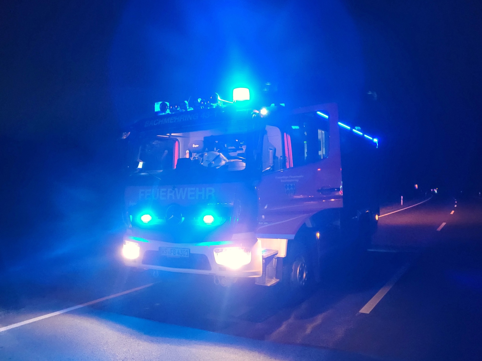 Die Feuerwehr Bachmehring unterstützte die örtliche Einsatzleitung mit dem Mehrzweckfahrzeug sowie beim Ausleuchten der Unfallstelle und der Verkehrsabsicherung.