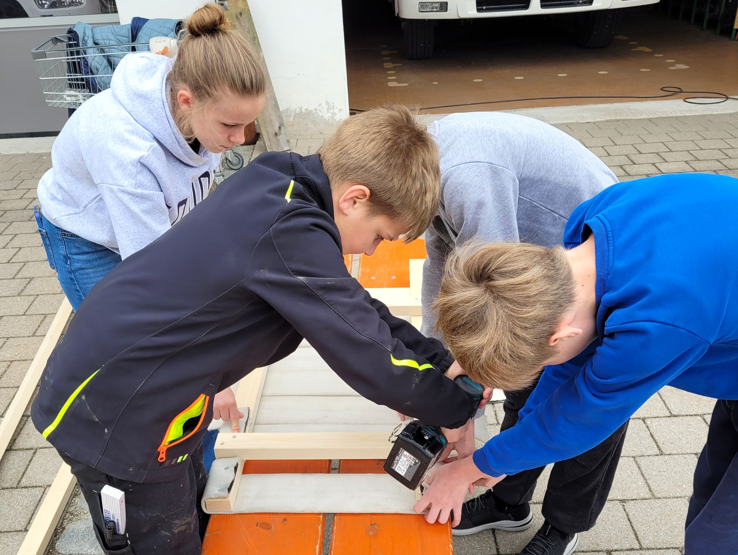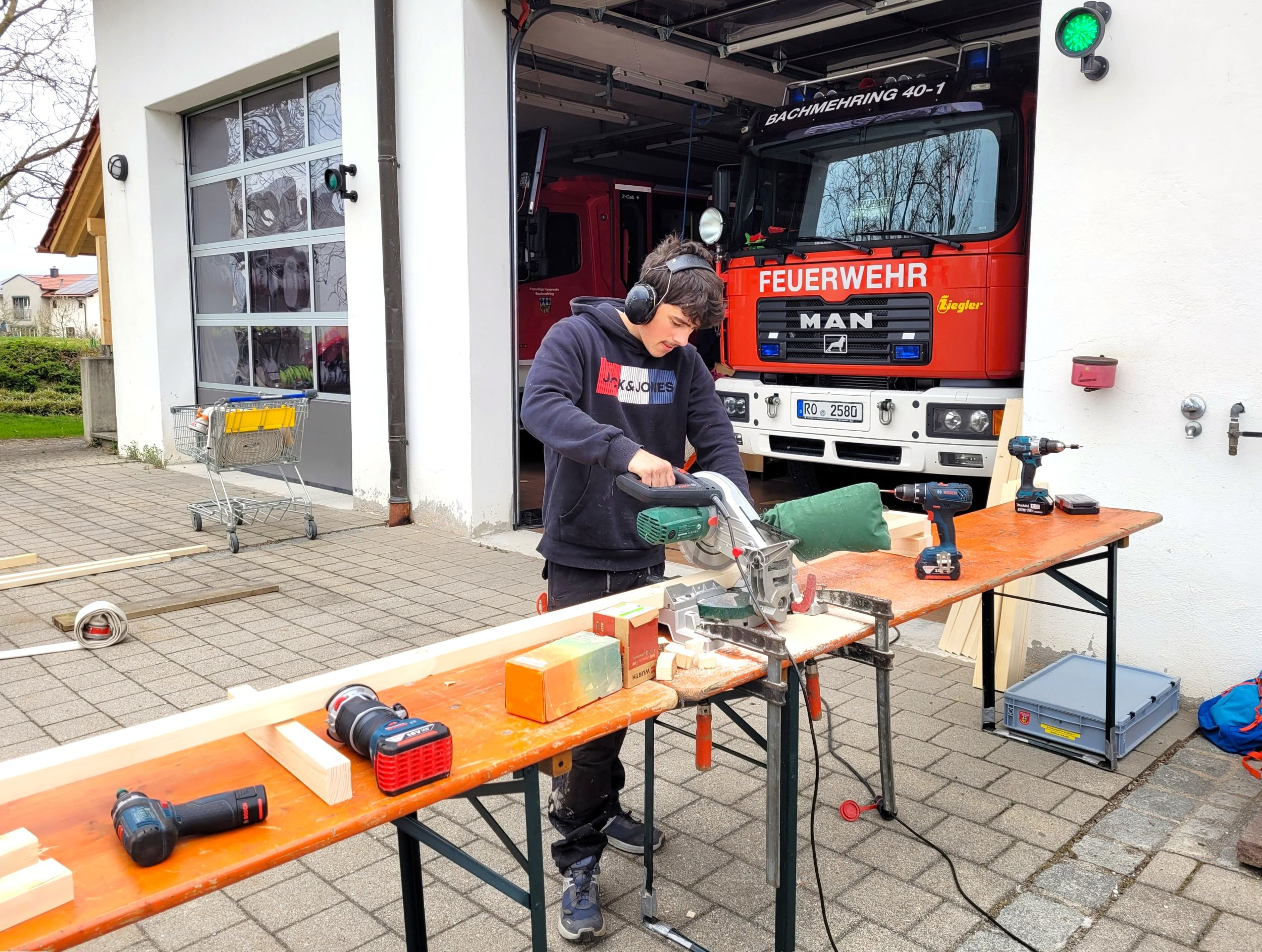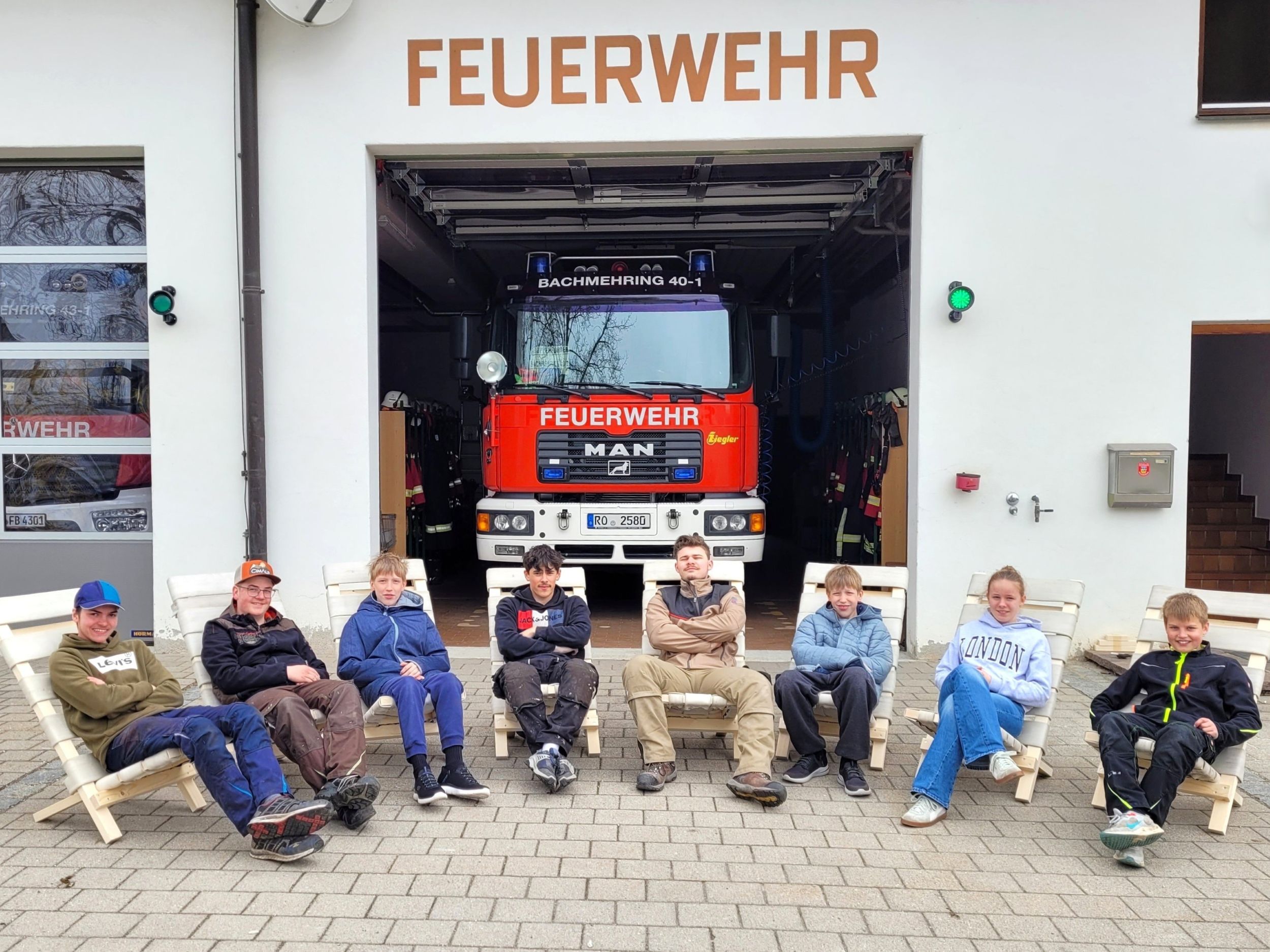 Fleißig und kreativ waren die Mitglieder der Jugendfeuerwehr Bachmehring am heutigen Sonntag. Aus Holz und ausgemusterten Schläuchen bauten sie hochwertige Feuerwehr-Stühle. Diese sind im Rahmen der Eiselfinger Festwoche zur gemeinsamen Jubiläumsfeier der Freiwilligen Feuerwehr Bachmehring und des TSV Eiselfing bei der Gemeinde-Rallye am Samstag, den 13. Juni 2026, neben weiteren attraktiven Preisen exklusiv zu gewinnen.